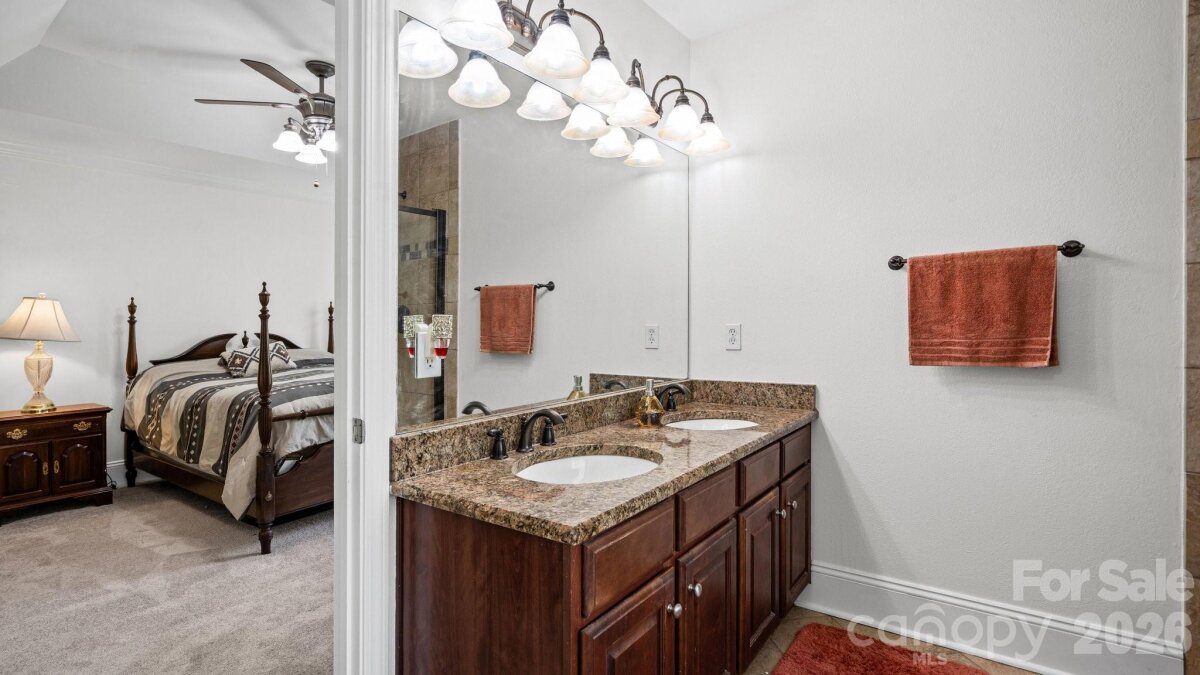 Buyers looking for a basement home - this home has it all and checks all the boxes! Perfect for multi generational, dual home offices, second living quarters, or flex space to fit your personal needs! Private large .5+ acre lot, premium perimeter lot backing up to wooded, no neighbor view behind property. From the street, take in the brand new 2026 Architectural roof, expanded driveway that accommodates up to four cars, attached two car garage, relaxing covered front porch, fiber cement siding, stone accents, black metal 6 foot fence, and mature landscaping. Mechanically superior condition - 2024 main HVAC, 2018 basement HVAC, and 2019 gas hot water heater. The inviting entrance foyer highlights all the recent interior updates the sellers made for marketing the home - brand new 2026 interior paint job throughout, refinished 2026 hardwood floors, and brand new 2026 carpet. Gather and host in the large formal dining room accented by intricate trim work including crown, chair, and picture molding, abundant natural light, bay window, beautiful hardwood floors, and raised ceilings. The large open kitchen boasts refinished sage cabinetry, granite countertops, stainless steel appliances, breakfast bar, and convenient pantry for storage. The sunlit breakfast nook with second bay window is the perfect spot to start your day with a cup of coffee and take in the private serene wooded views behind the home. The living room is accented by a back wall of windows, crown molding, hardwood floors, and exposed staircase to basement. The wide foyer stairway leads you to the second floor where you will find four bedrooms and two full bathrooms (includes oversized bonus/bedroom). The primary retreat spans the entire width of the back of the house and boasts raised tray ceilings, spacious walk in closet, dual vanities, Jacuzzi whirlpool garden tub, and separate shower stall. The bonus/bedroom already has two large closets and built in wet bar with sink - lots of possibilities for the space. This flexible layout continues in the basement level second living quarters with both interior and exterior walk out basement access. The basement is highlighted by a large open living space with wet bar featuring granite countertops and sink. The basement also has a separate flex room - currently used as home office and guest room (not counted as a bedroom in MLS). Extend your living area outdoors on the relaxing patio with grilling station, second paver sitting area, or around the built in fire pit. The backyard is fully fenced in with an upgraded elegant decorative iron-style fence with gate. This neighborhood does not have an HOA.