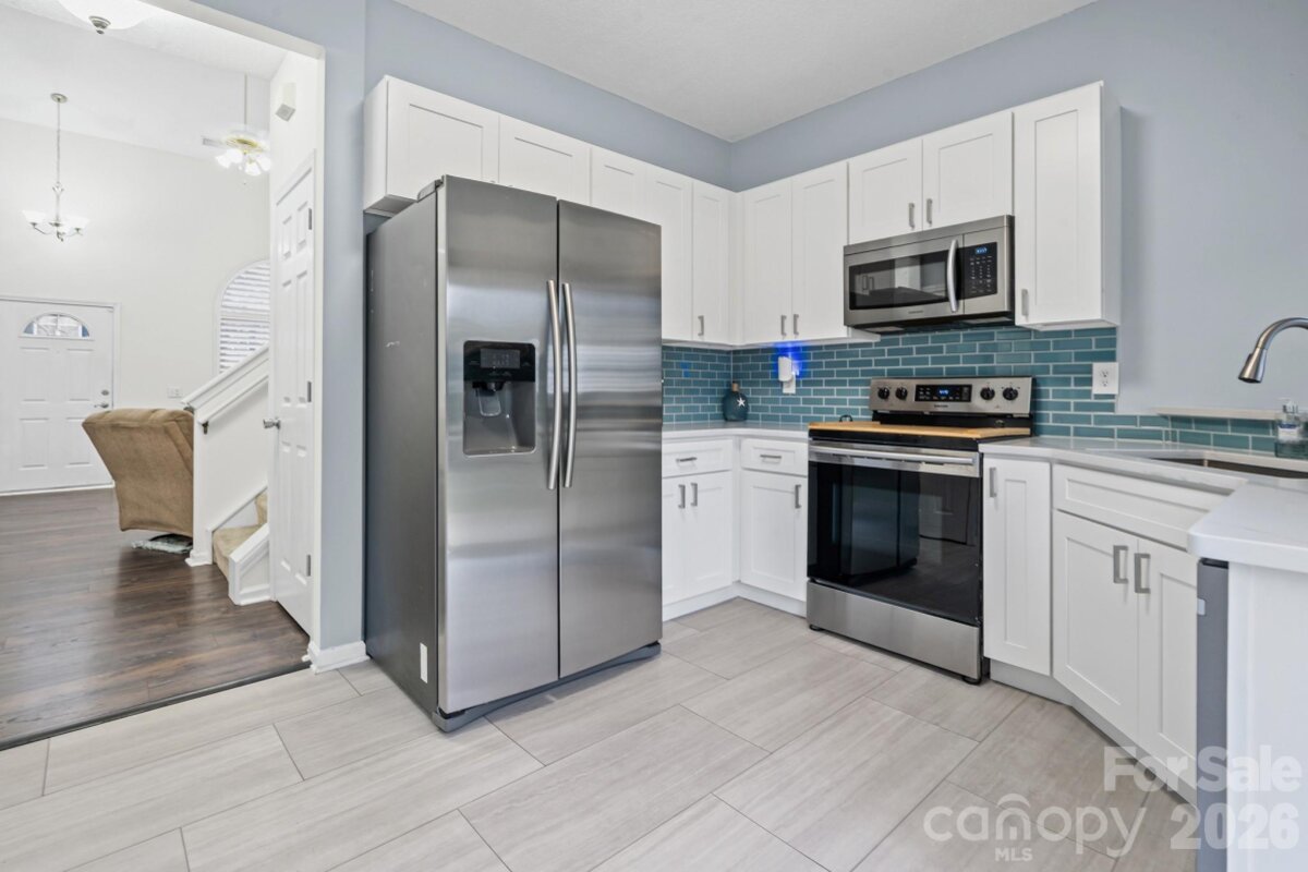 Welcome home to this beautifully renovated townhome with numerous recent upgrades throughout that distinctly make it stand apart from the other available units in the community. Brand new professional interior paint job throughout! Great mechanical condition - 2018 Architectural roof and 2016 HVAC. The front door opens to a stunning two story great room showcasing upgraded 2017 Pergo laminate floors, 2020 Plantation shutters for privacy, and custom built in shelves leading to an added storage closet under staircase. The adjoining dining room makes this a great floor plan for entertaining guests and hosting gatherings. New 2025 kitchen remodel boasts new "soft close" white shaker cabinets, new sleek quartz countertops, large single basin undermount sink, custom tile backsplash, and added butlers pantry providing valuable kitchen storage and counterspace. The renovated kitchen also features replaced 2023 tile flooring, 2024 dishwasher, 2025 disposal, 2018 stainless steel stove, and 2020 custom roller shade for sliding glass doors leading to private patio. Flexible floor plan with primary bedroom located on the main level with option of second primary bedroom upstairs. The lower primary bedroom offers a 2023 remodeled bathroom with custom tile walk in shower stall, modern glass doors, upgraded commode, replaced vanity, tile floors, mirror, lighting, and exhaust fan. The attractive exposed staircase and catwalk open to a flexible upstairs loft perfect for a home office or second den. The second bedroom is highlighted by a large walk in closet, separate dressing area with private sink, and direct access to the upstairs full bathroom. The upstairs jack and jill bathroom has also been tastefully renovated in 2023 to include new tile floors, new soaking bath tub, custom tile surround, refreshed cabinetry, and replaced commode. The second level also includes a good sized third bedroom and spacious walk in laundry room with custom drop down folding table. The carpet in the unit was replaced in 2017 and has been professionally cleaned for marketing. The convenient half bathroom for guest located on the main level has also been updated with a 2023 renovation including new tile floors, vanity, commode, lighting, and mirror. Extend your living areas outdoors on the relaxing rear patio overlooking treelined common area. This unit has a premium location in the community with the community pool being just steps away from the unit.
