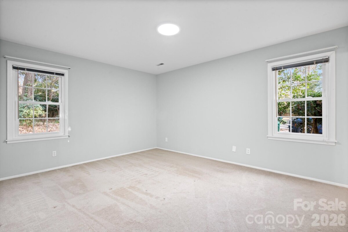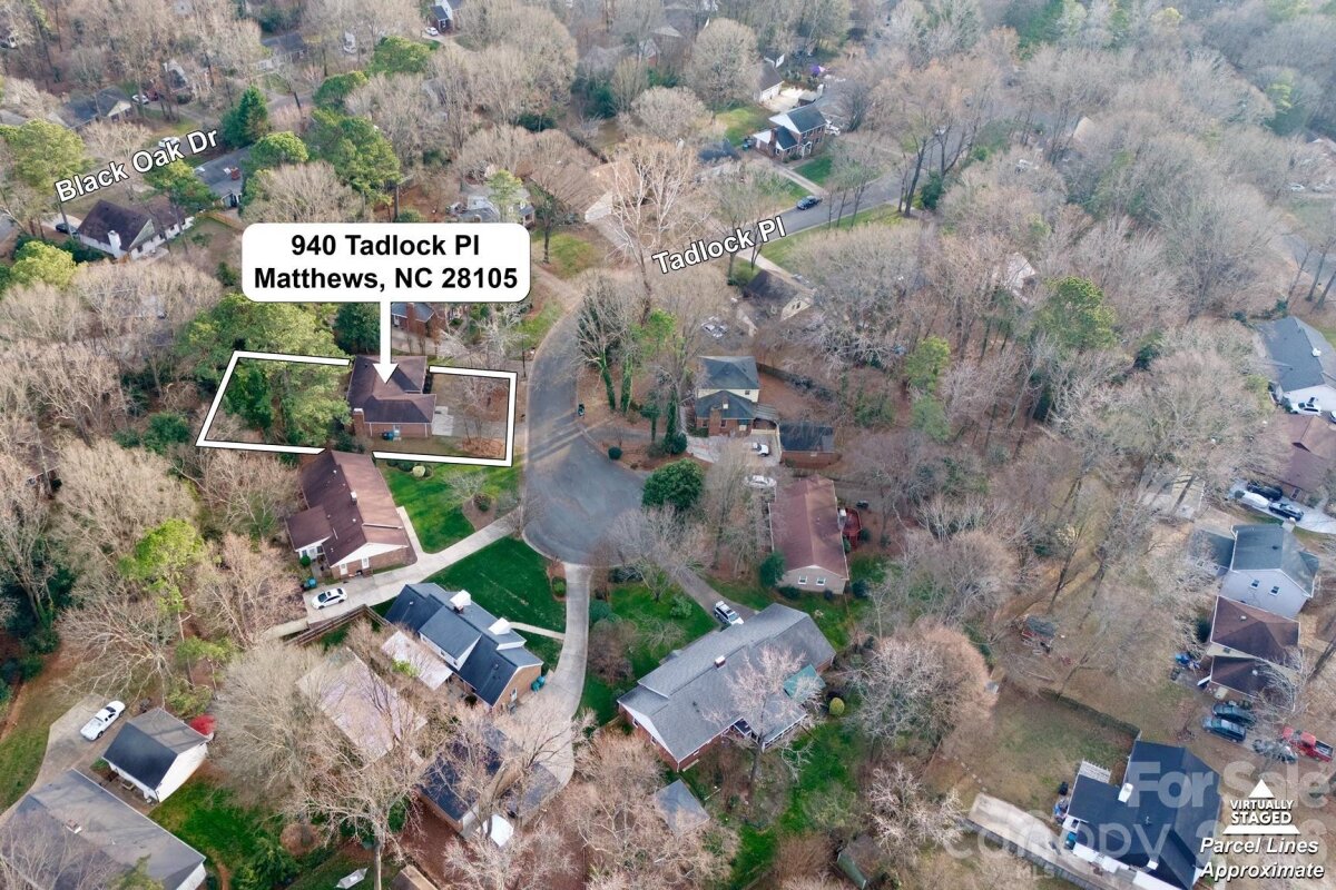 Attractive full brick ranch with attached two car garage and prime .28 acre cul-de-sac lot in the Matthews section of Sardis Forest. Superb curb appeal provided by 2020 vinyl insulated windows, 2015 Architectural roof, decorative brick corner quoins, elegant exterior dentil molding, freshly painted sleek black shutters and front door, storm door, new pine needles, new black mulch, new azaleas, and desirable elevated position from the street with great views of cul-de-sac. Neutral interior paint, brand new light fixtures, new exterior and interior door knobs, professionally cleaned carpets and windows for marketing. Inviting entry foyer with upgraded hardwood floors, direct access to garage, large coat closet, and open views to living room, dining room, and kitchen. The spacious living room is accented by intricate crown molding, two large picture windows, eye catching floor to ceiling masonry fireplace, bar area with mini fridge, and glass door leading to the relaxing rear deck. The open kitchen and dining room combination showcases upgraded tile floors, timeless white on white decor, breakfast bar, smooth top stove, and large pass through window. The upgraded hardwood floors in the foyer continue down the main hallways leading to all three bedrooms. The primary bedroom is tucked in the rear corner of the home and is complete with walk in closet and private ensuite full bathroom. Two generously sized auxiliary bedrooms face the front of the house and share a convenient full hall bathroom. Solid bones, full brick construction, updated mechanicals - 2020 windows, 2015 Architectural roof, 2011 hot water heater, and 2009 Trane Heat Pump - ready for your vision and own personal touches. The laundry room is located inside the attached garage - great open space to make a large drop off zone before entering the home. The backyard is highlighted by a relaxing rear deck, tree lined yard, partially fenced with current survey uploaded to media section. Sardis Forest Swim Club memberships are additional and optional - based on availability. The Galleria Shopping Center is roughly one mile away and Sardis Forest residents can walk to local stores, small businesses, grocery stores, movie theater, coffee shops, and multiple restaurants nearby. Convenient location in South Charlotte - MoRa, South Park, Cotswold, Downtown Matthews, and the Arboretum all less than 5 miles away from the neighborhood. Runners, walkers, cyclist, and outdoor nature enthusiasts will appreciate McAlpine Creek Greenway, McAlpine Creek Park, and James Boyce Park all being just a few minutes away!